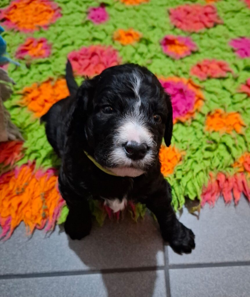 Noa en Lex zijn op vrijdag 17 oktober de trotse ouders geworden van 7 puppies: 4 teefjes en 3 reutjes. De puppies hadden een prachtig geboortegewicht dat varieerde tussen de 410 en 485 gram. Drie teefjes zijn zwart en één teefje is bruin. Bij de reutjes bijna hetzelfde, twee reutjes zijn zwart en 1 reutje is bruin. Ze hebben allemaal witte aftekeningen, de één wat meer dan de ander. Noa ging meteen in de ‘mamastand’ en is een op en top moeder. Voorlopig is het heel veel slapen en mama in goede conditie houden.